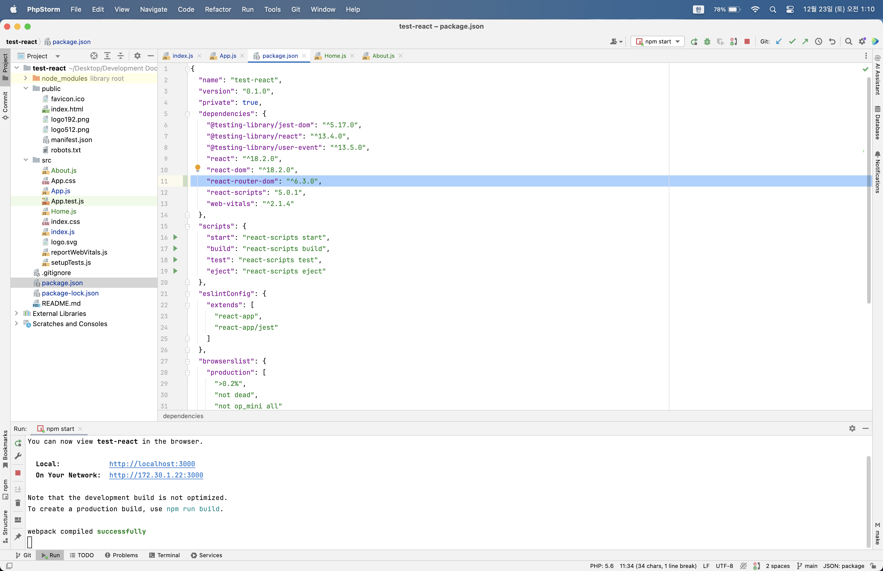 리액트 npm phpstorm or 웹스톰에서 모듈 설치